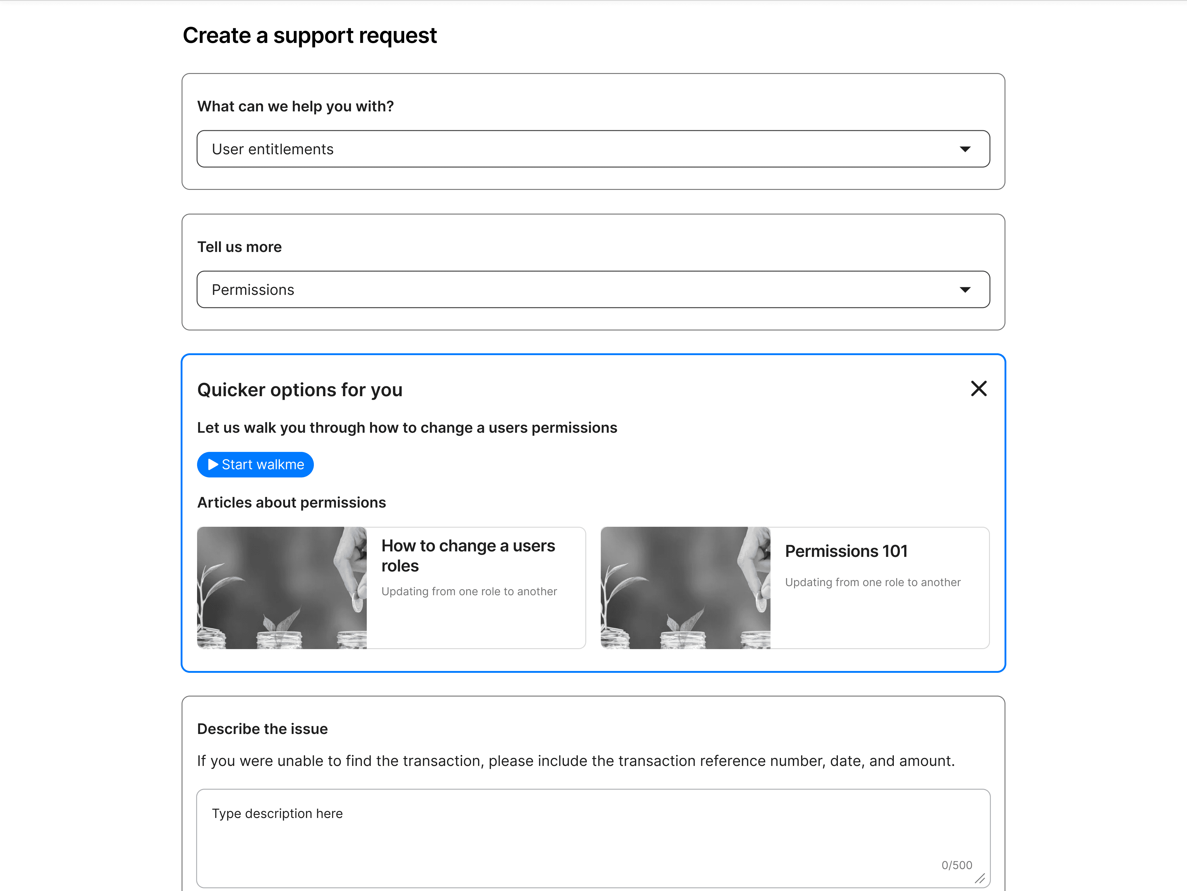 Curated support channels - integrating WalkMe guides, help articles, and videos.