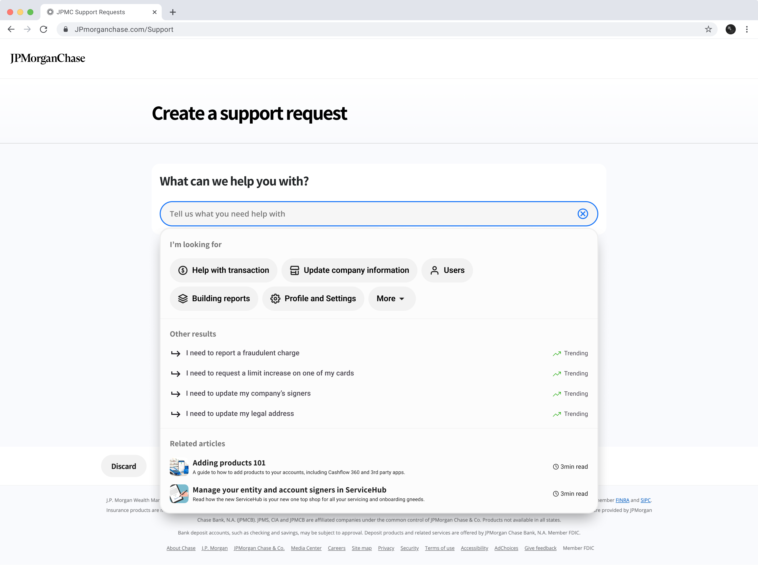 Build a responsive, platform-agnostic (Chase Connect, JP Morgan Access, and NX) ticketing solution scalable for all types of support request, while streamlining support interactions by reducing case cycle time and message volume.