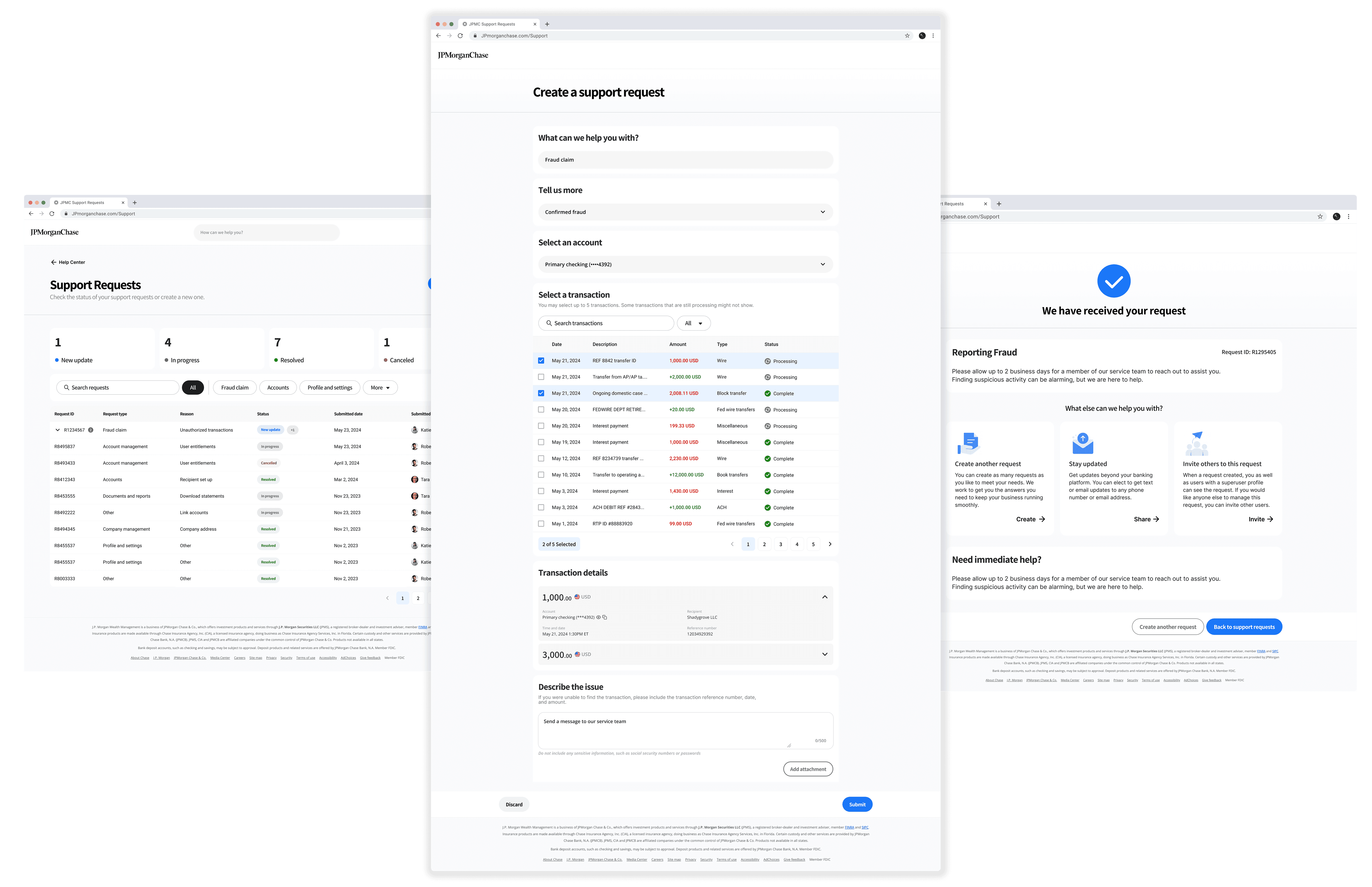 Using JPMC’s design system as a base, I created two-way communication patterns tailored to real user needs.